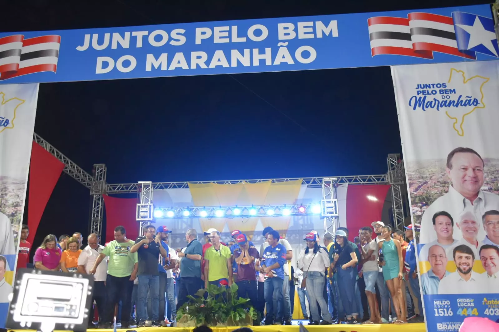 Com a presença dos deputados estaduais e candidatos à reeleição, Antônio Pereira e Adelmo Soares, do deputado federal Hildo Rocha e do secretário da SEDES, Paulo Casé, que representou seu irmão, deputado Pedro Lucas, o prefeito Aluisinho, a vice Irene Arruda e os vereadores fizeram um grande comício na Praça do Mercado, após a carreata pelas ruas da cidade.