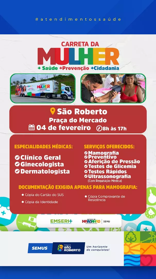 SÃO ROBERTO: Carreta da Mulher Maranhense fará atendimento nesta quarta-feira (04/02)