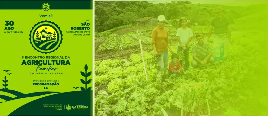 Com uma extensa programação, incluindo lançamento de programas importantes para a Agricultura Familiar, palestras e outras atividades voltadas para o homem do campo, São Roberto sediará o I Encontro Regional da Agricultura Familiar do Médio Mearim, nesta terça-feira (30), a partir das 8 horas, na Quadra Poliesportiva Adriano Júnior.